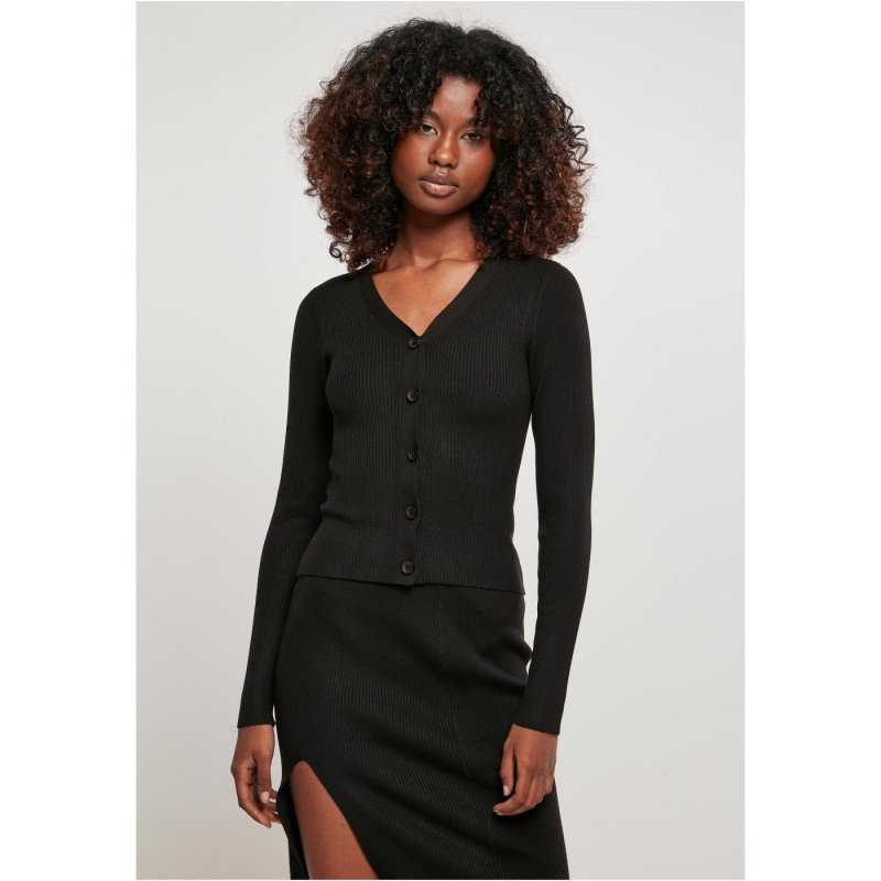 Dámský kardigan s krátkým žebrovým úpletem - černý