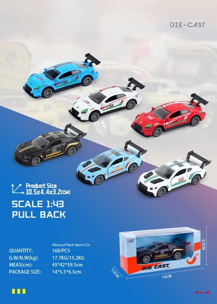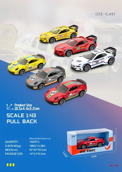 Kovové závodní autíčko na zpětné natažení 10 cm