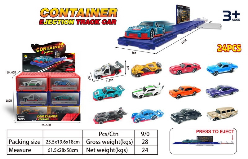 Kovové vystřelovací autíčko v kontejneru 7,5 cm