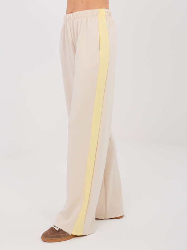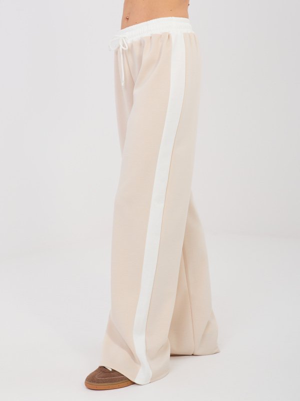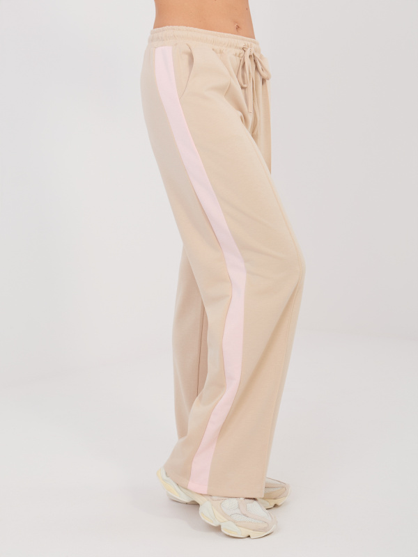 Béžové tepláky s růžovým pruhem