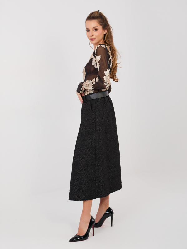 Černá midi sukně s páskem