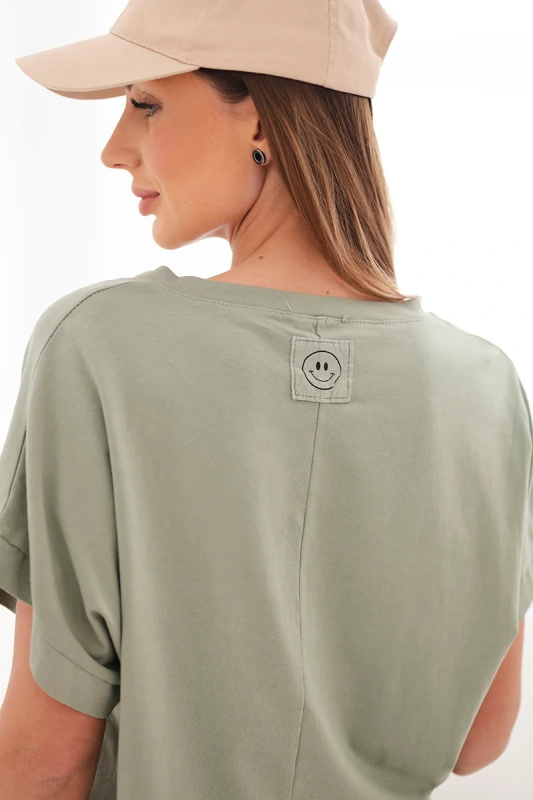 Kesi plus size bavlněný top s krátkými rukávy a vázáním