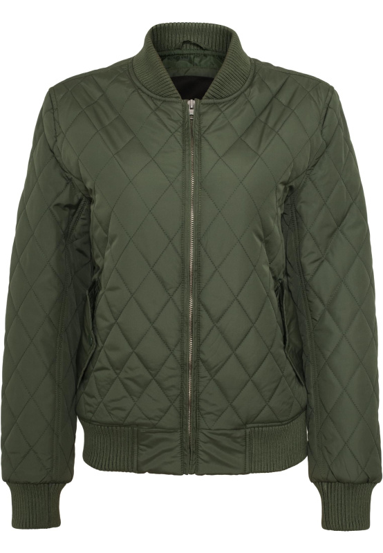 Dámská Diamond Quilt Nylonová bunda olivová