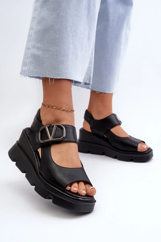 Dámské sandály na klínku a platformě z eko kůže, černá triaola 36