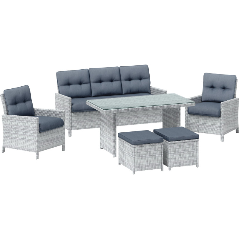 Sestava zahradního nábytku s jídelním stolem Luciara, ocel/ratan, 6dílná