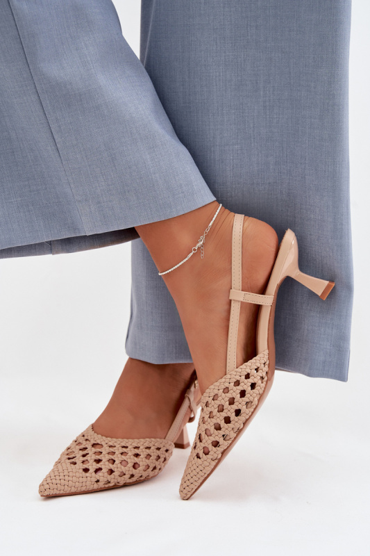 Béžové tkané sandály s podpatkem Selinae