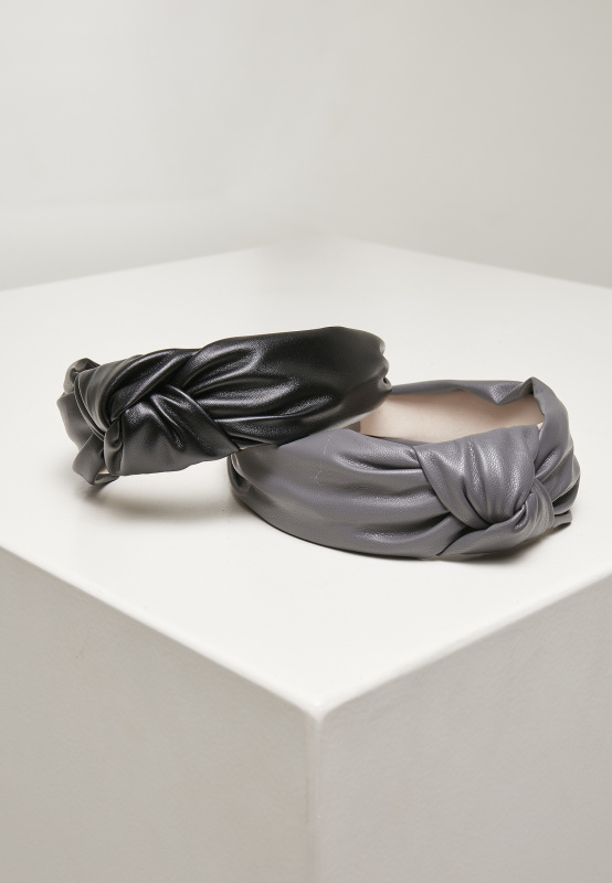 Alice Band Imitation Leather Knot 2-Pack černá/šedá