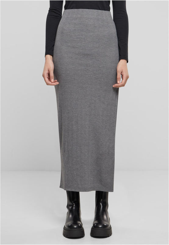 Dámská žebrovaná sukně s vysokým rozparkem šedá
