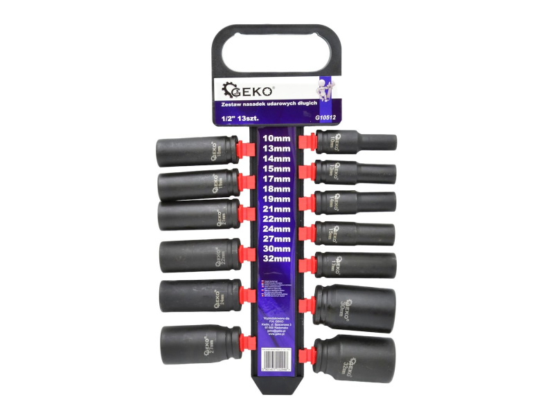 Sada 13 nástrčných rázových dlouhých hlavic 1/2" - GEKO