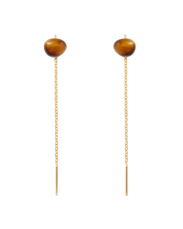 PDPAOLA Pozlacené řetízkové náušnice s tygřím okem LYRA AR01-G58-U