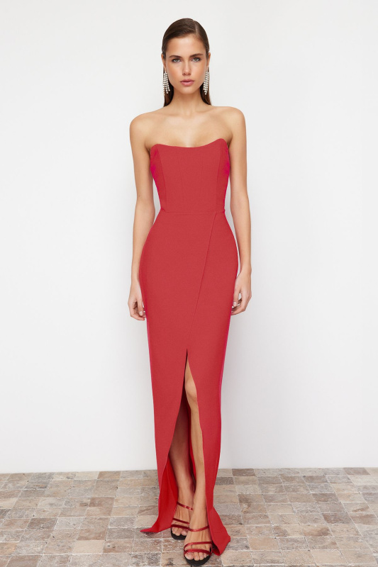 Trendyol Red Corset Detailed Woven Long Evening Dress