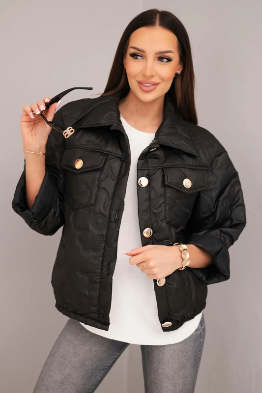 Kesi Włoski Dámská jarní prošívaná bunda s květinovým vzorem černá