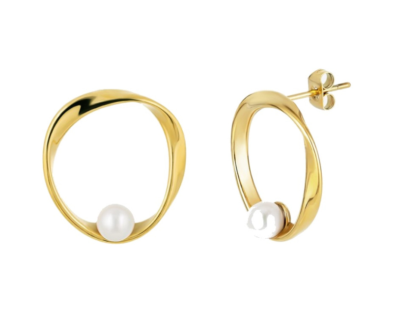 Preciosa Pozlacené náušnice z oceli Bliss s voskovou perlou Preciosa 7462Y01