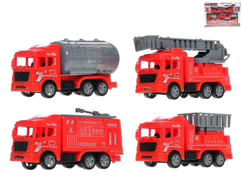 Auta hasiči 13 cm 1 : 64 na zpětný chod, 4 ks