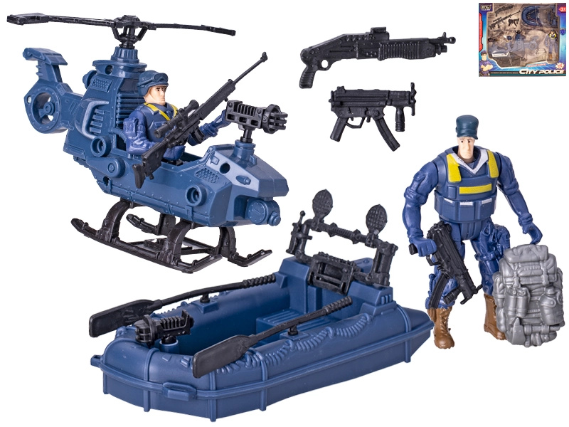 Policie vrtulník 22 cm na setrvačník na baterie se světlem a zvukem s doplňky