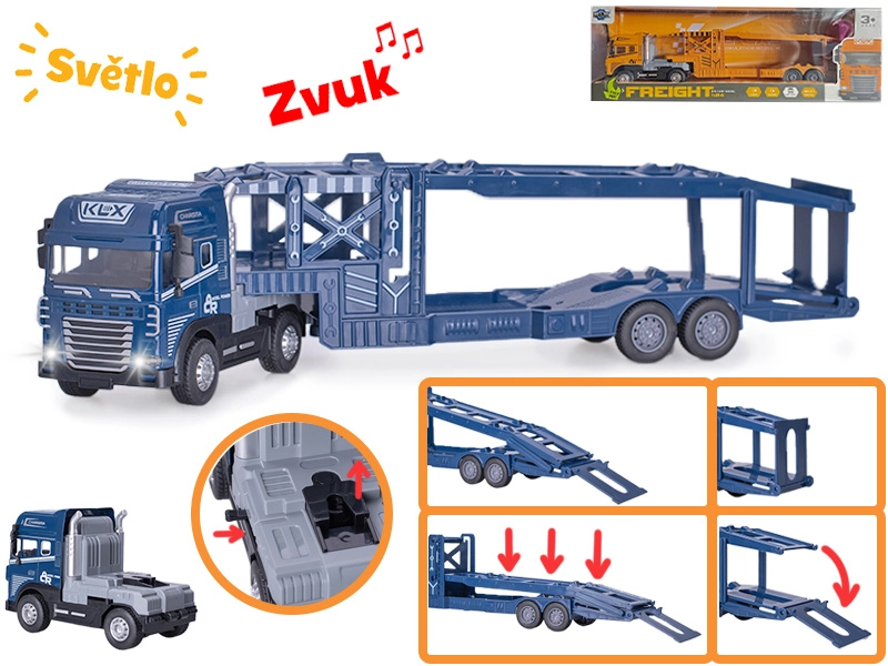 Přepravník aut 40 cm 1:24 kov na baterie na setrvačník se světlem a zvukem, mix barev