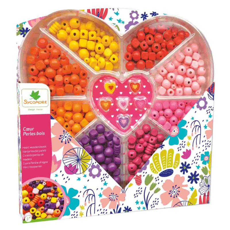 Dřevěné korálky v úložné krabičce ve tvaru srdce