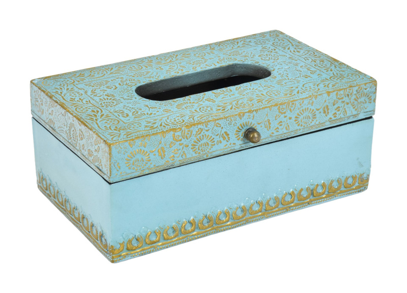 Sanu Babu Krabička na kapesníky, drěvěná, zdobená mosazným plechem, 25x15x11cm