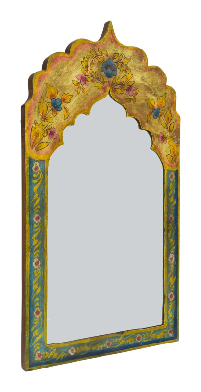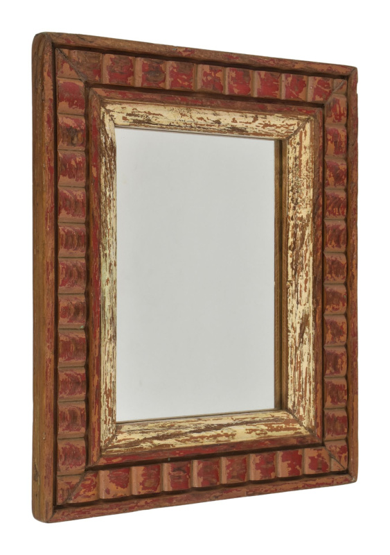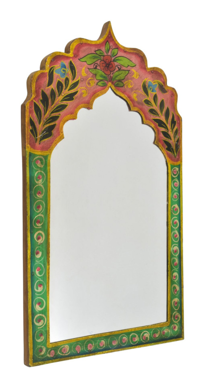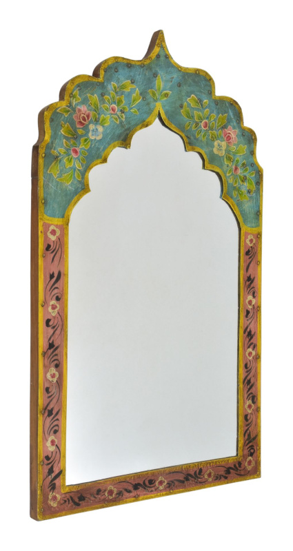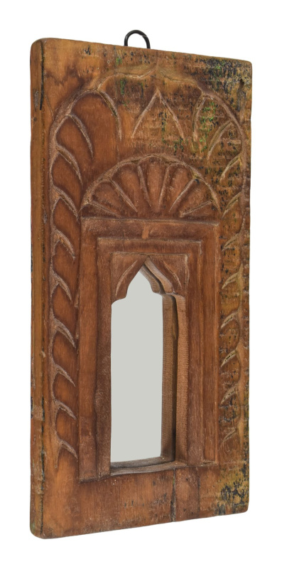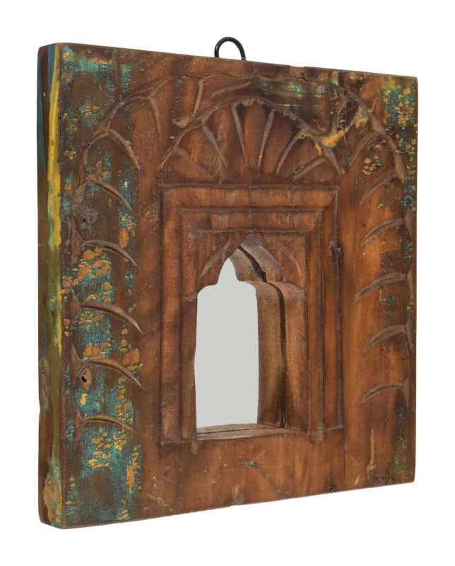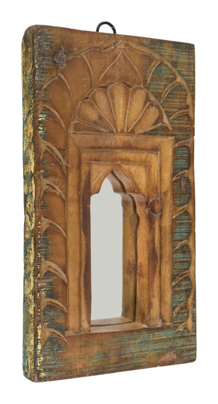 Sanu Babu Dřevěný rám z teakového dřeva se zrcadlem, ruční řezby, 17x3x31cm