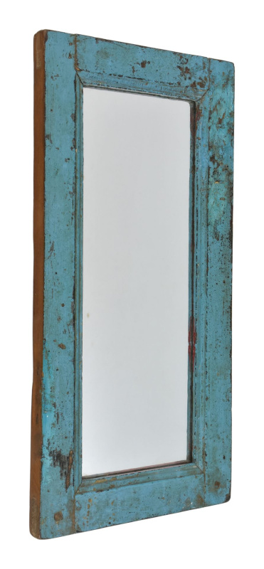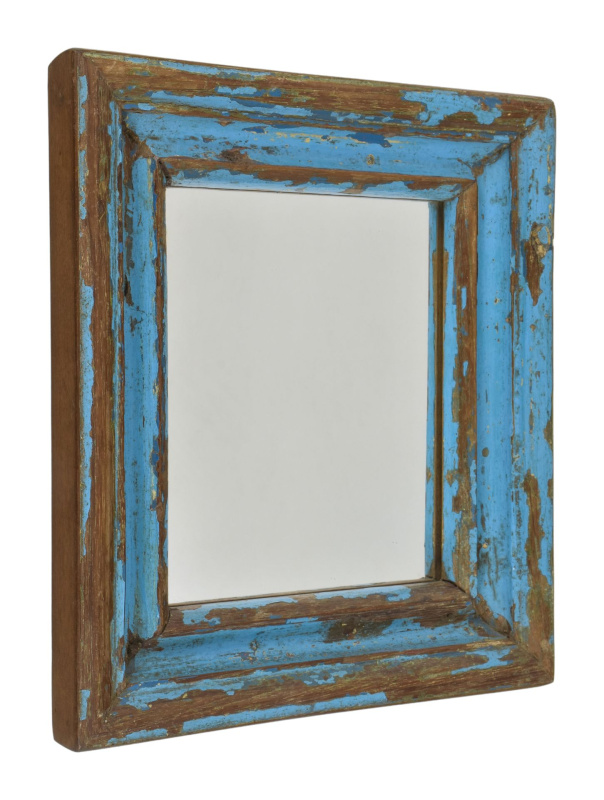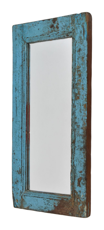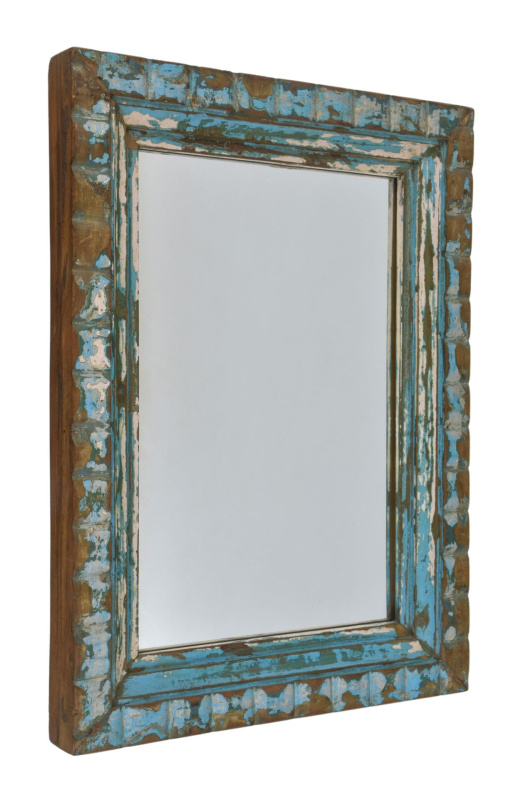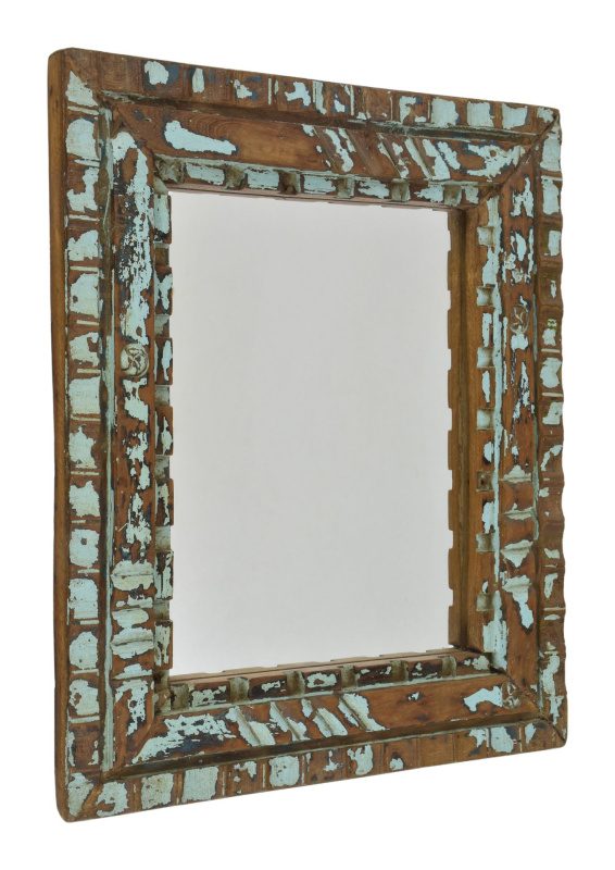 Sanu Babu Zrcadlo v rámu z teakového dřeva, tyrkysová patina, 35x3x76cm