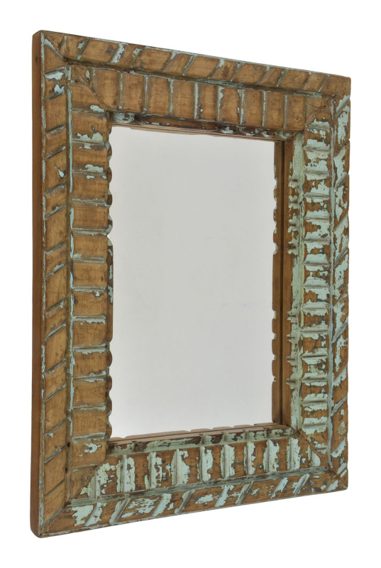 Sanu Babu Zrcadlo v rámu z teakového dřeva, tyrkysová patina, 22x3x47cm (3J)