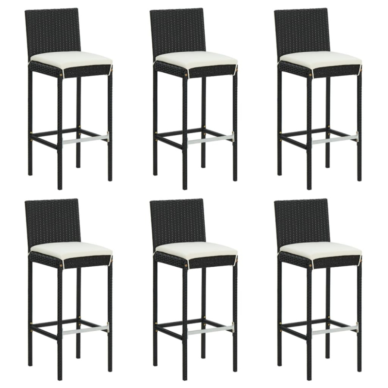Barové Stoličky S Poduškami 6 Ks Černé Polyratan - Černá
