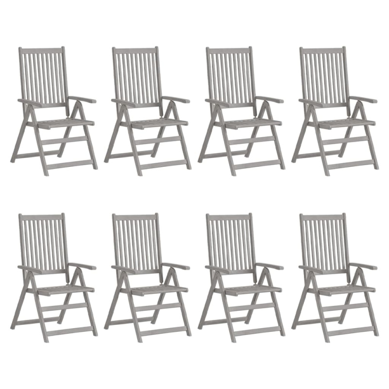 Zahradní Polohovací Židle 8 Ks Šedé Masivní Akáciové Dřevo - 4
