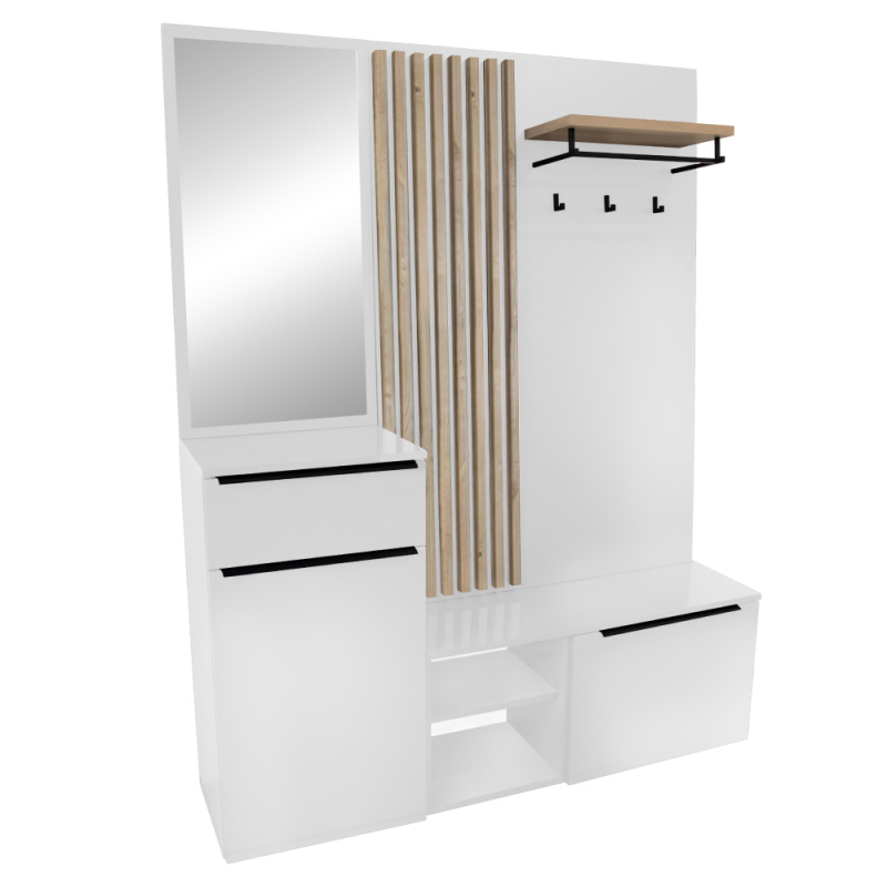 Předsíňová sestava, dub sonoma/bílá, VIRA-MECKI NEW