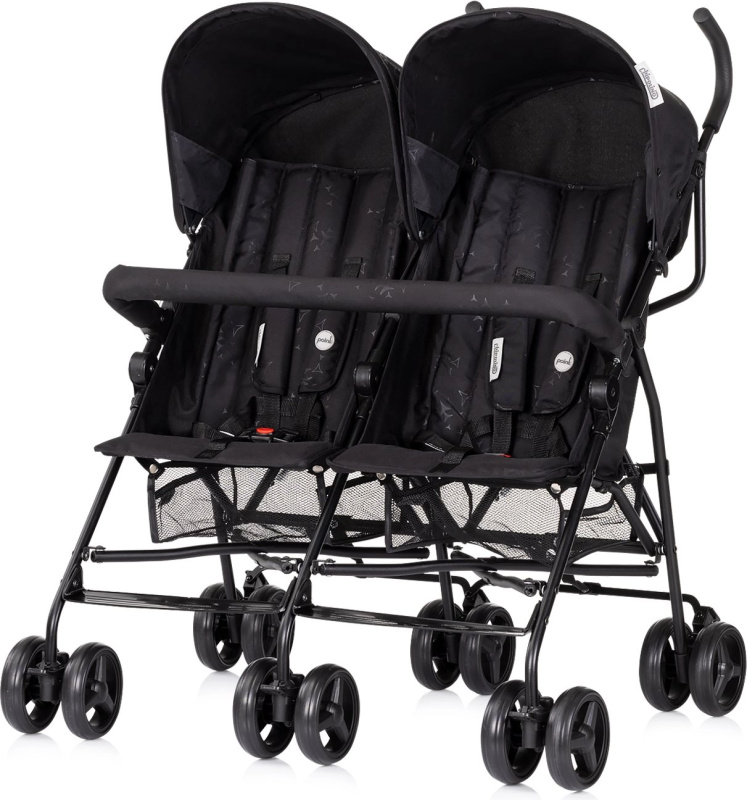 Kočárek pro dvojčata Chipolino Double Point Blackberry – golfový, lehký a skladný