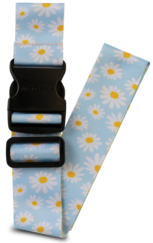 Cestovní popruh na kufr Worldpack - Modrý s kopretinami