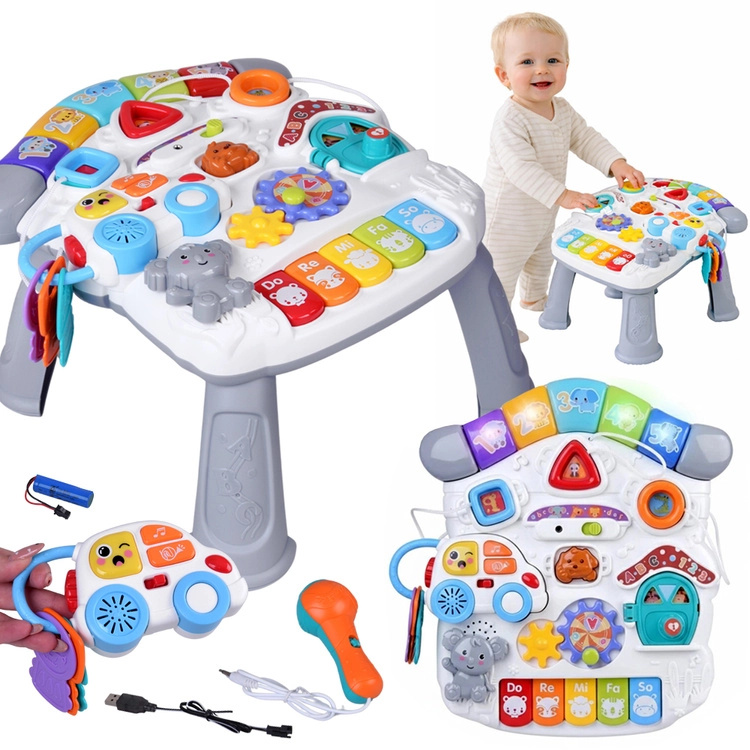 Interaktivní vzdělávací stolek pro batolata s hudbou, světly a mikrofonem