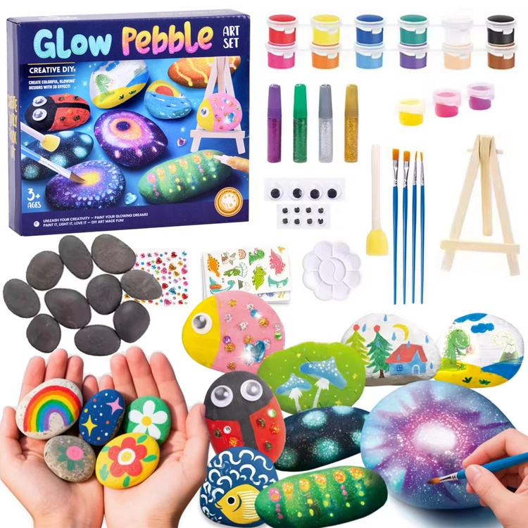Sada pro malování kamenů DIY se svítícími barvami a ozdobami