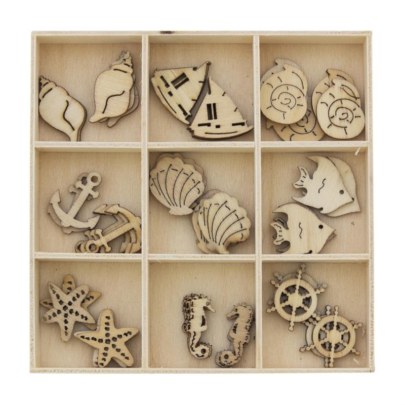Galeria Papieru Dekorační dřevěné výřezy - mořský život, 45 ks