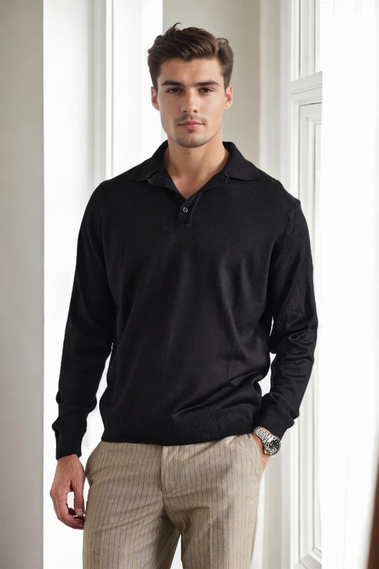 28296 Dewberry Polo Neck Mens Knit Sweater-BLACK