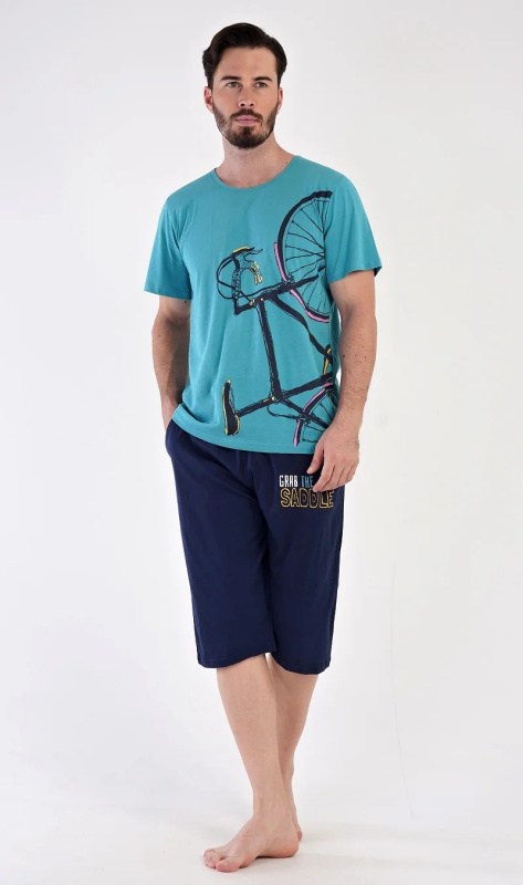 Pánské pyžamo bermudy Dominik mentolové - Vienetta XL