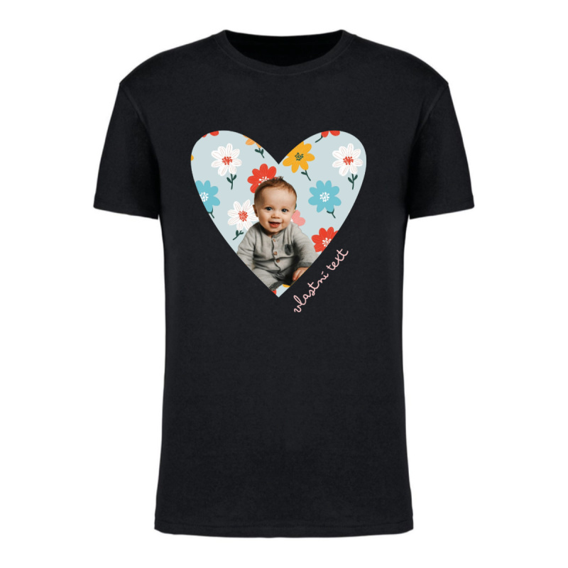Personalizované dámské tričko s fotografií a květinovým ohraničením