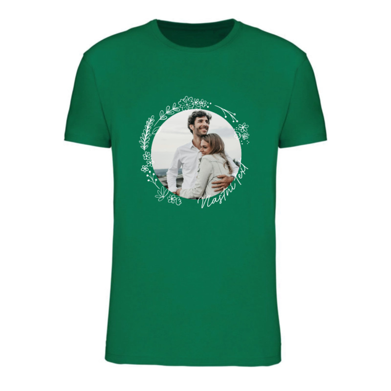 Personalizované pánské tričko s fotografií a květinovým ohraničením