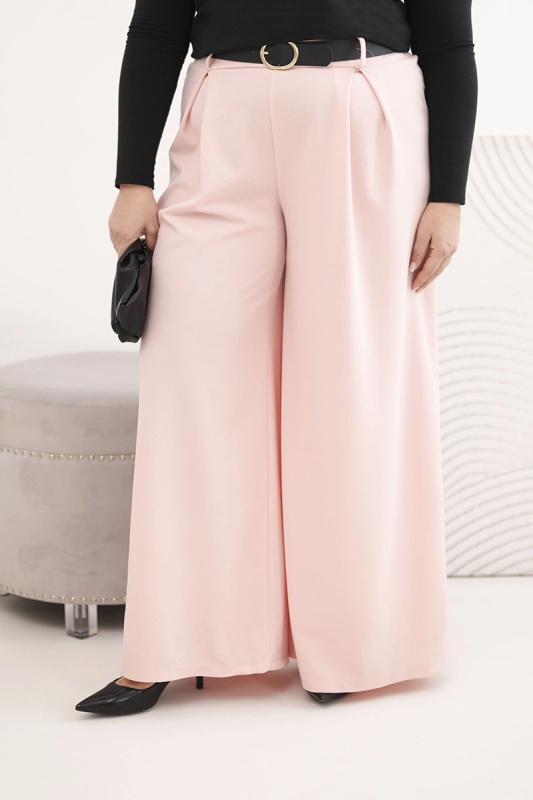 Dámské plus size široké kalhoty s páskem