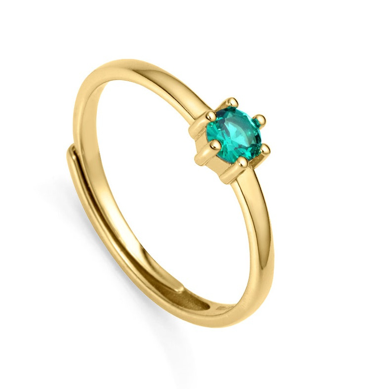 Viceroy Půvabný pozlacený prsten se zeleným zirkonem Clasica 9115A01 55 mm