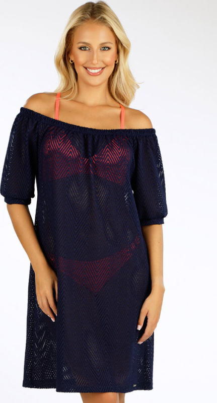 Plážové šaty s krátkým rukávem 6g397 tmavě modrá litex l