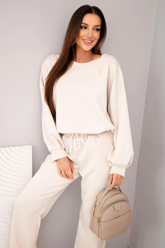 Dámská souprava s brož a rovnými kalhotami