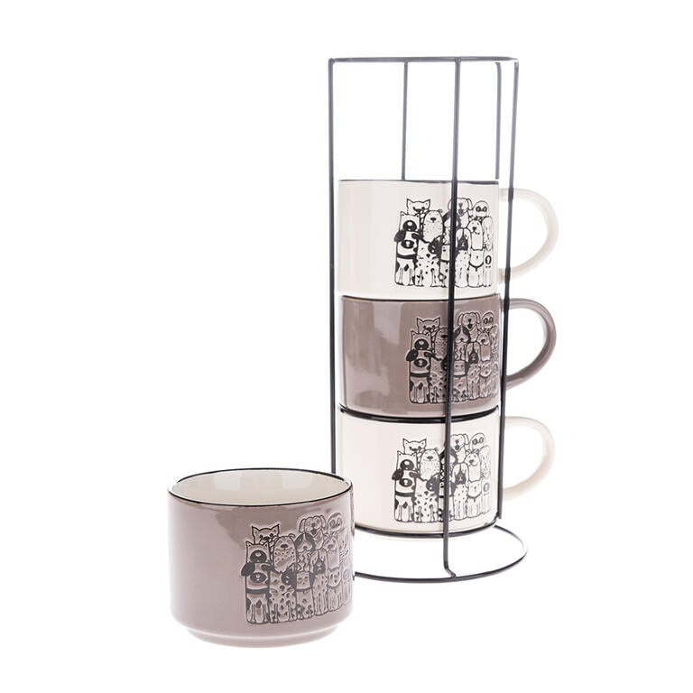 Sada 4 ks keramických hrnků PSÍ SMEČKA ve stojanu 300 ml