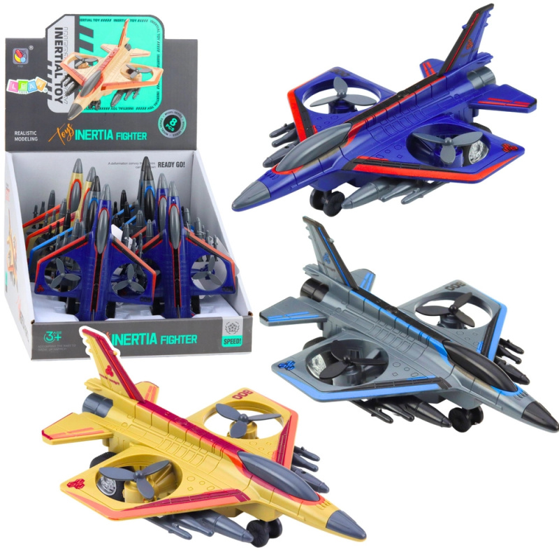 Vojenský tryskáč se setrvačníkem a rotujícími vrtulemi