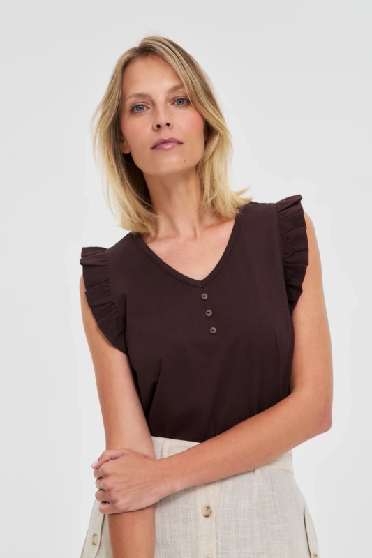 Marisse Brown Blouse With Ruffles On The Shoulders