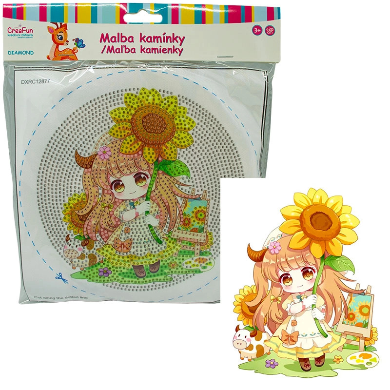 Diamantové malování s rámem - Panenka a slunečnice 20 cm