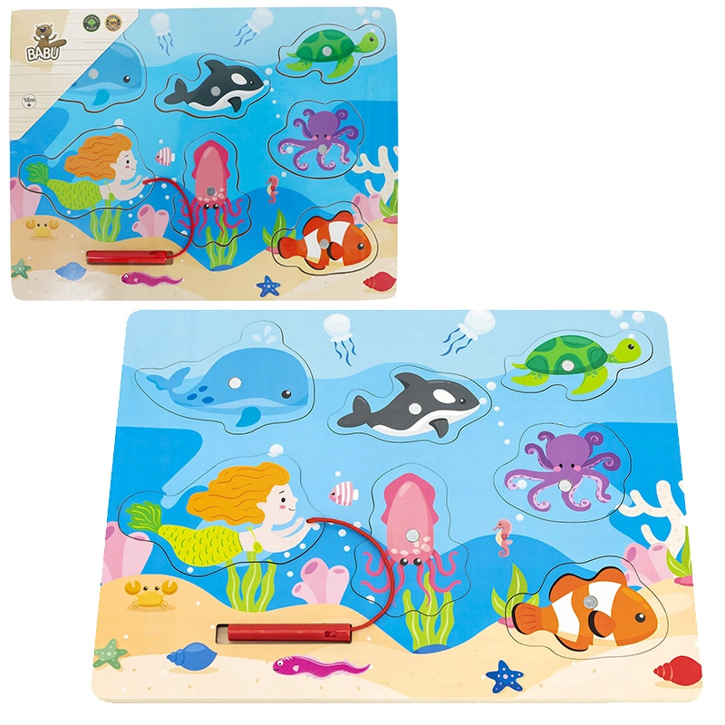 BABU - Dřevěné puzzle s prutem mořský svět