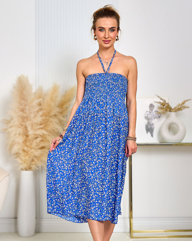 Letní dámské modré šaty s květinovým motivem