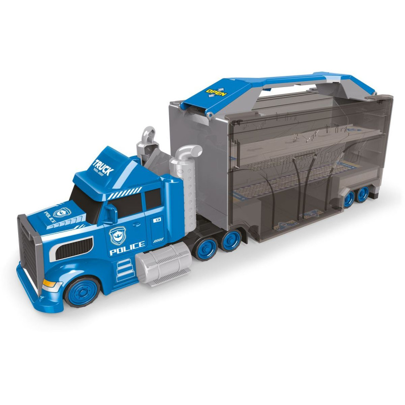 Policejní kamion se 4 auty a dopravními značkami