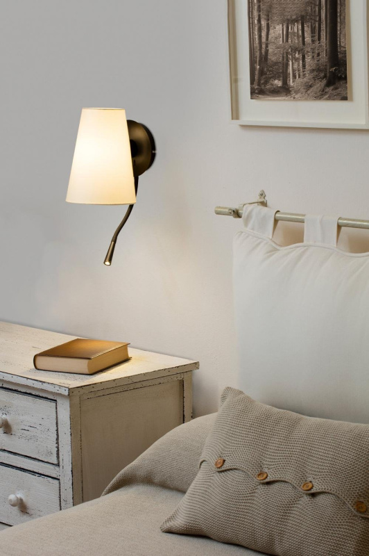 LUPE černá/béžová nástěnná lampa se čtecí lampičkou - FARO