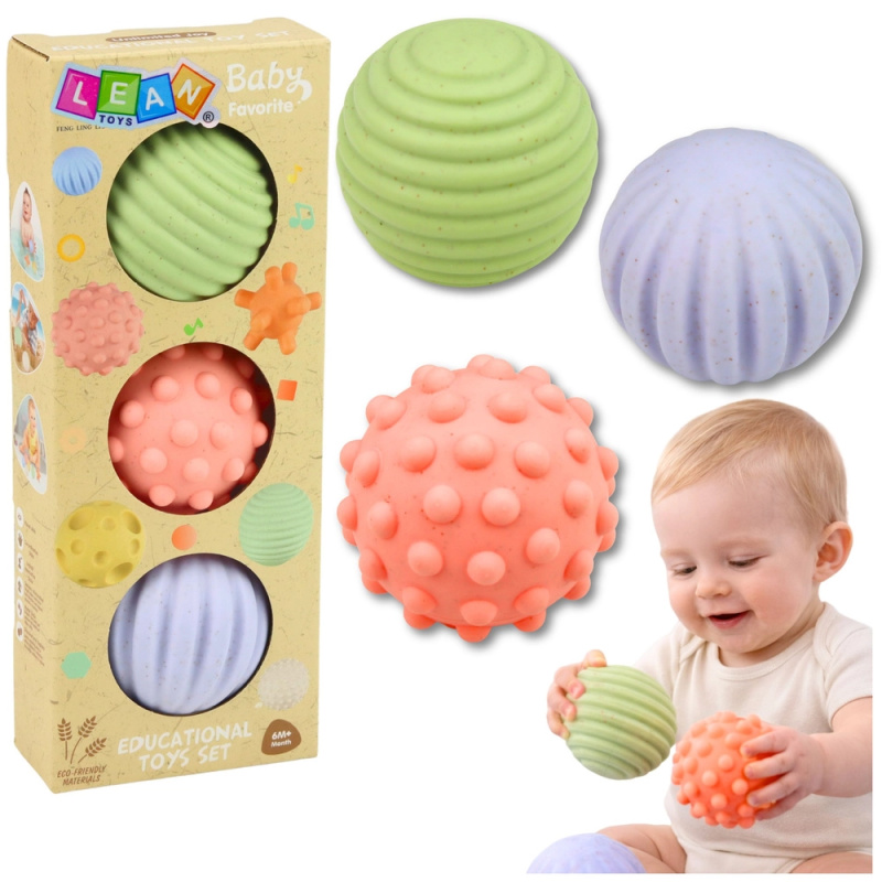 Senzorické pastelové míčky pro miminka, 3 ks, 6 cm